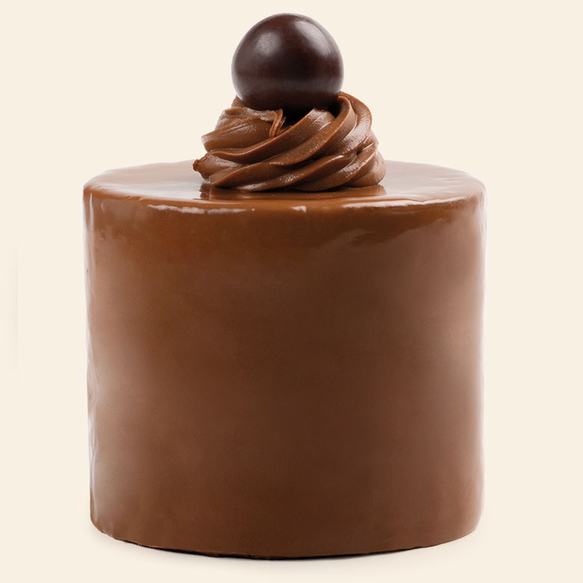 Núcleo de cereais revestido de puro chocolate preto com 16mm de diâmetro.