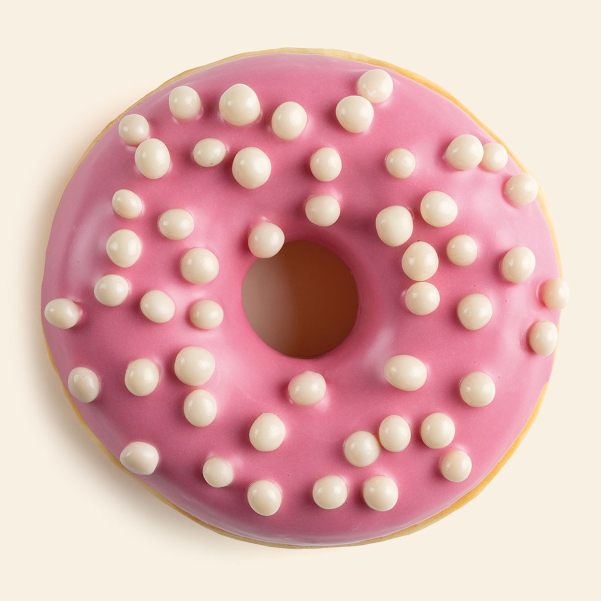 Pequenas bolas de cereais revestidas de chocolate branco puro.