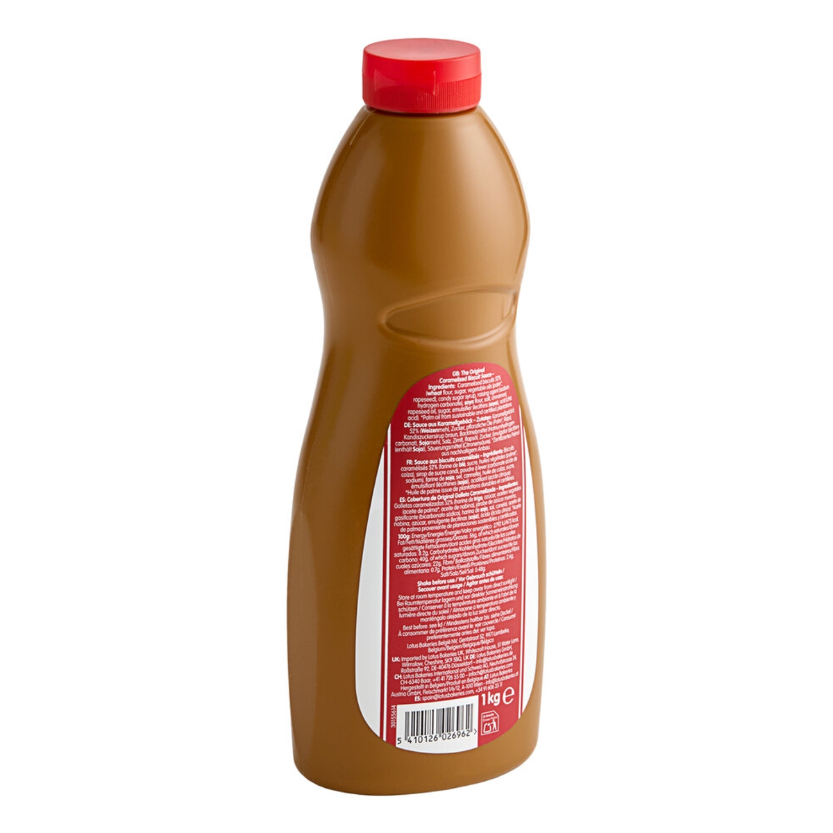 Este produto é embalado numa garrafa de 1 kg que dispensa a manteiga de biscoito de forma suave e fácil, para um regar perfeito e sem sujidade. É perfeito para usar como ingrediente de pastelaria ou condimento em padarias, restaurantes, cafés e gelatarias. Como produto vegan e sem nozes, é uma excelente adição ao seu menu e irá satisfazer os clientes com alergias e restrições alimentares. Além disso, este produto é feito sem sabores artificiais, corantes ou conservantes, para que possa servi-lo com confiança, sabendo que está a proporcionar aos seus clientes a melhor experiência possível.