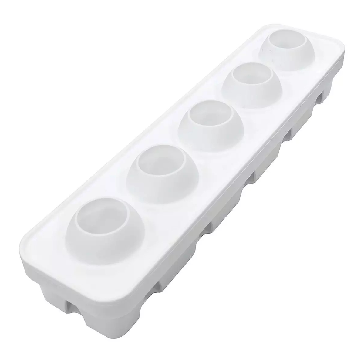 O kit é composto por um molde de silicone com cinco cavidades (115 ml cada) e um prático suporte de plástico para um resultado perfeito durante a preparação.