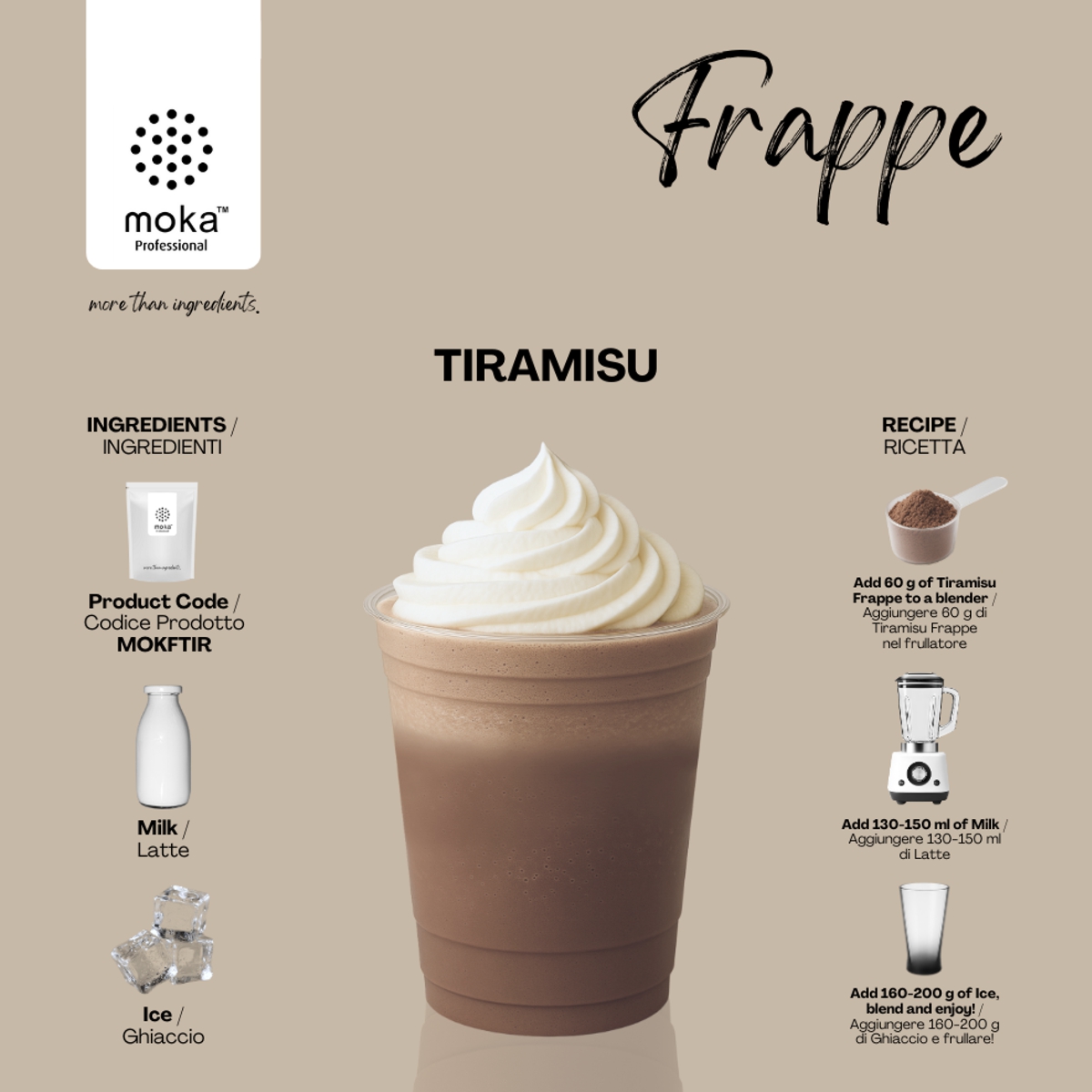 A mistura em pó para frappe de Tiramisu oferece uma bebida versátil: perfeita para desfrutar tanto fria como quente, adaptando-se a todas as estações e a todas as ocasiões!