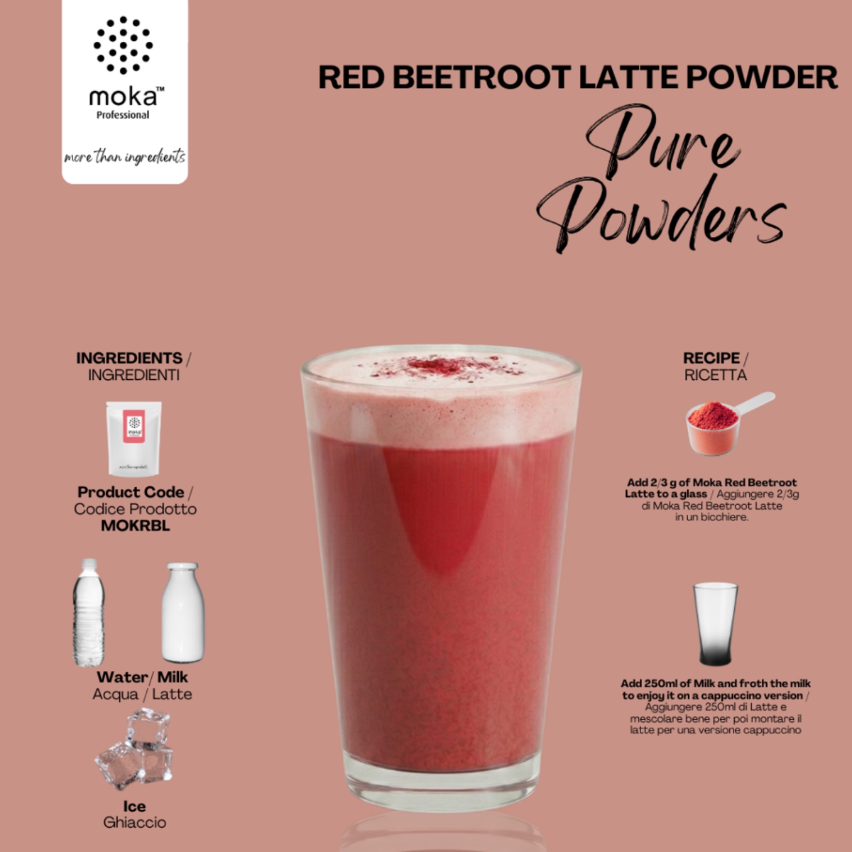 A mistura em pó para Red Beetroot Latte é a solução ideal para bares, cafés, restaurantes, gelatarias, pastelarias e estabelecimentos Ho.Re.Ca., mas também é perfeita para uso doméstico.