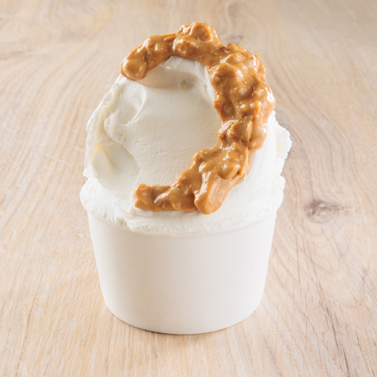 Molho de biscoito caramelizado com pedaços de biscoito crocante. Ideal para enriquecer taças e copos e para decorar iogurte gelado e gelado cremoso.