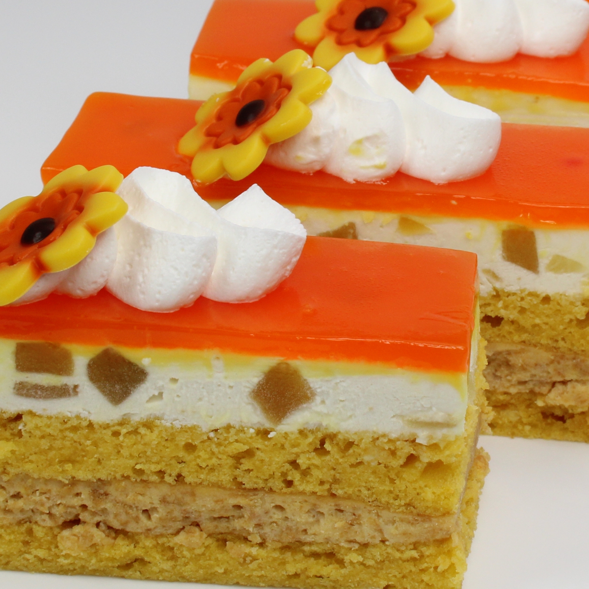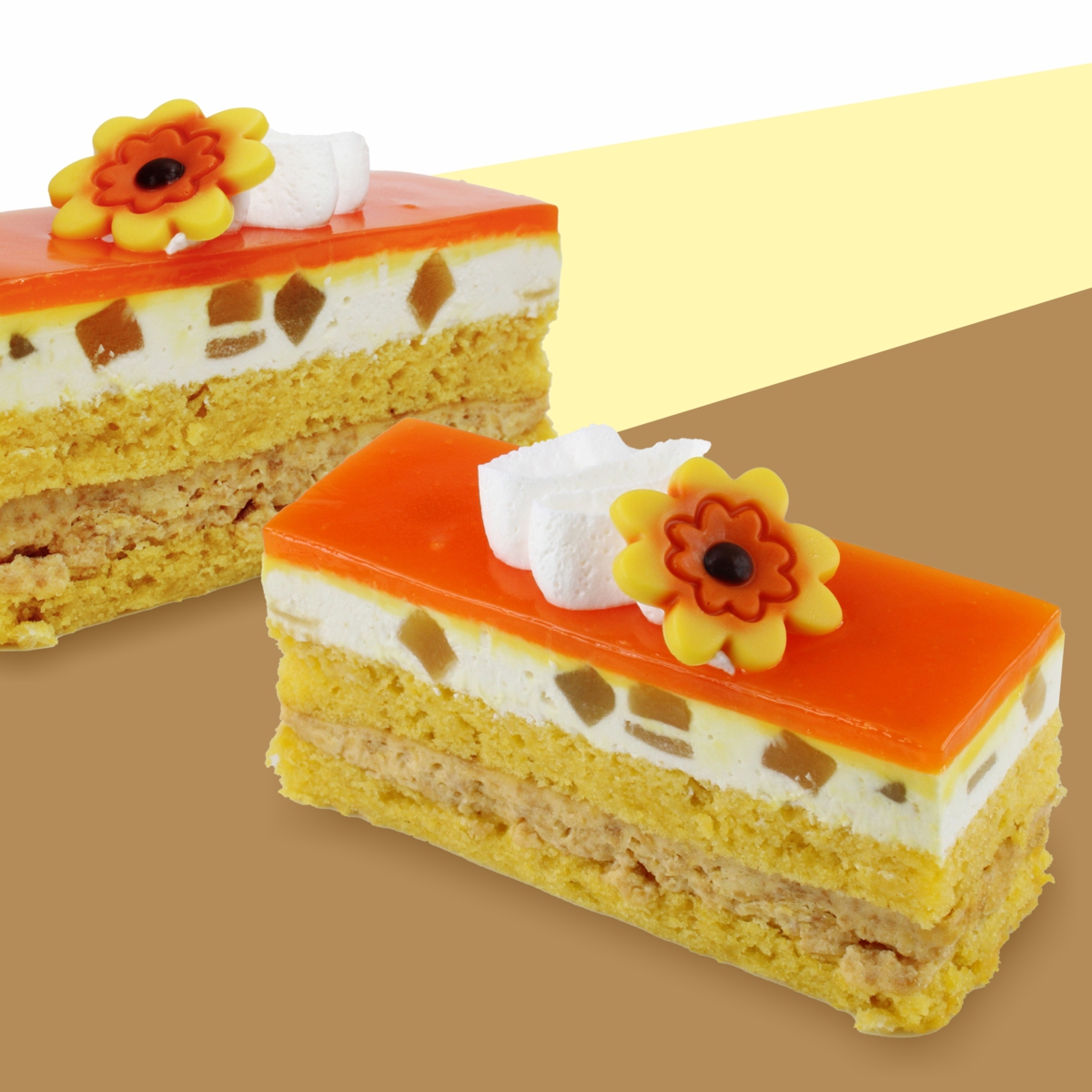 - Aplicar o Praliné de Maracujá ligeiramente aquecido 35/40º directamente na pasta de laranja